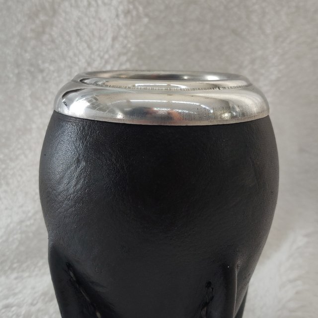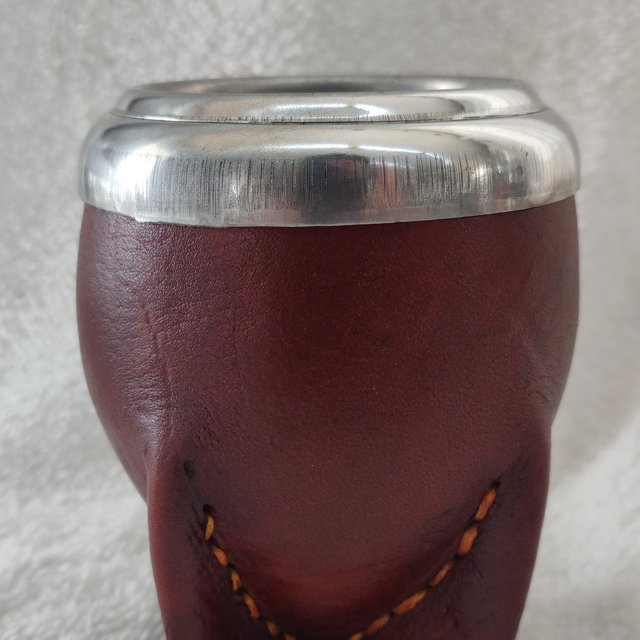 Mate torpedo, de calabaza, recubierto en cuero, con virola de aluminio