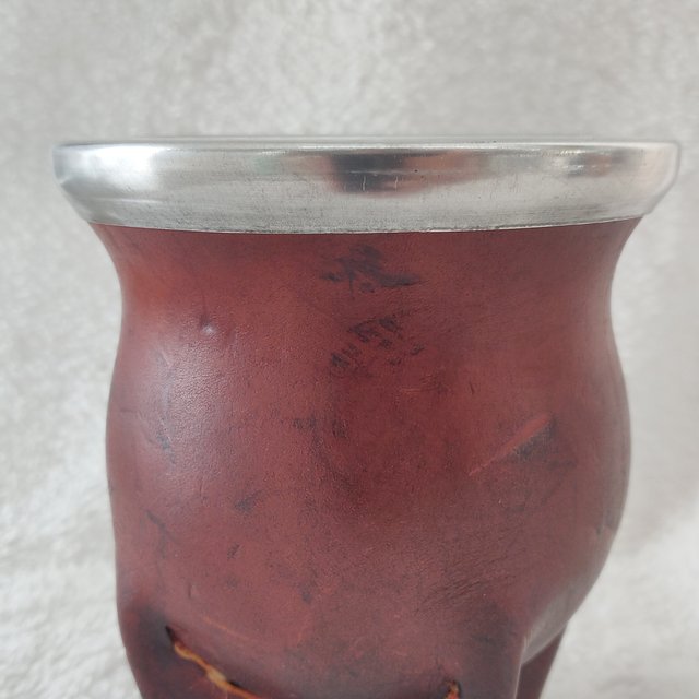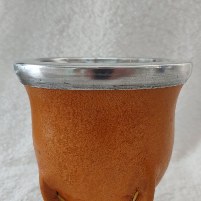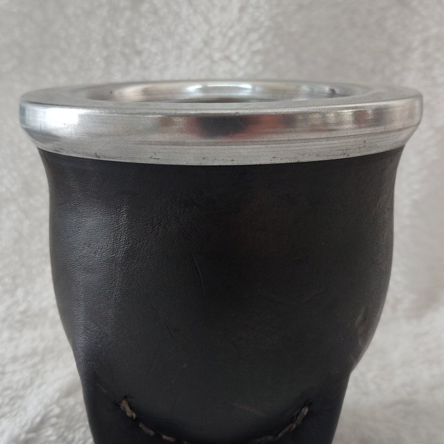 Mate camionero de calabaza, recubierto en cuero, virola de aluminio
